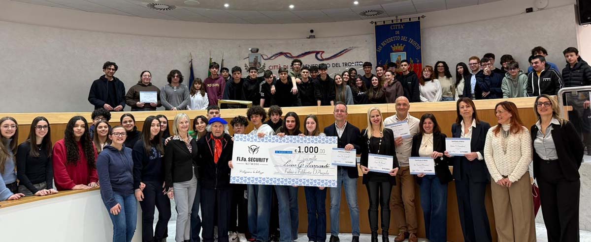 Fi.fa Security Network e le scuole di San Benedetto insieme per il futuro del territorio. Grande partecipazione degli istituti cittadini all’evento conclusivo del progetto: il Liceo Classico “G. Leopardi” si aggiudica il riconoscimento principale per l’originalità e la profondità dell’opera presentata –
